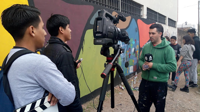 En este camino, los pibes/as pensaron, para este año, cubrir con las cámaras (que son comunitarias, como los micrófonos) el camino que nos lleva a ver el arte de las calles. En una primera etapa, se pensó la tarea del periodista en lo que respecta a las dudas, el tema, elegir qué facetas del arte cubrir y cuando. Luego de esto, se pateó las calles del barrio para identificar el arte que tenemos al lado nuestro, filmarlo, guardarlo en nuestros ojos para después sí, ir más lejos a hacer preguntas, averiguar, conocer.